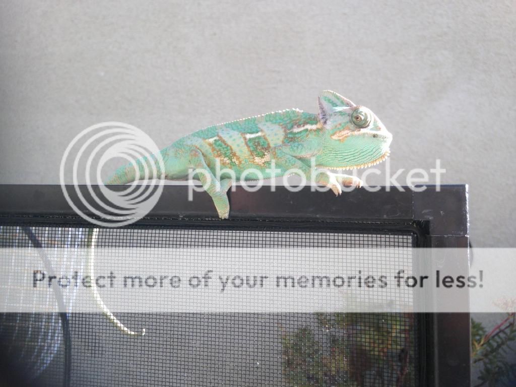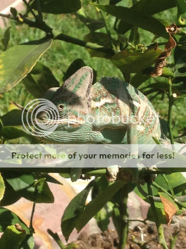 So, for those who don't know or remember me, I work at Petco as a dog trainer. My main store doesn't carry reptiles (that goodness!), but in May, I started working at one that does, as they have no trainer. Needless to say, the staff didn't really know how to care for chameleons, and there was one who was terribly sick, wrecked with MBD, two eye infections, and a far gone respiratory infection. I took her home in hopes of getting her better, but she did not make it. Back in June, replacement chameleons came in. One was bought, and the other was there for months. He has no MBD, as I informed the Companion Animal Manager on proper supplements, however due to the enclosures we keep them in, he kept getting RI's, mouth rot, and was beginning to get an eye infection. He's been on baytril twice in the 4 months he was at the store, and when he started showing signs again, all it took was a little coaxing for our CADM to adopt him out to me 2.5 weeks ago.