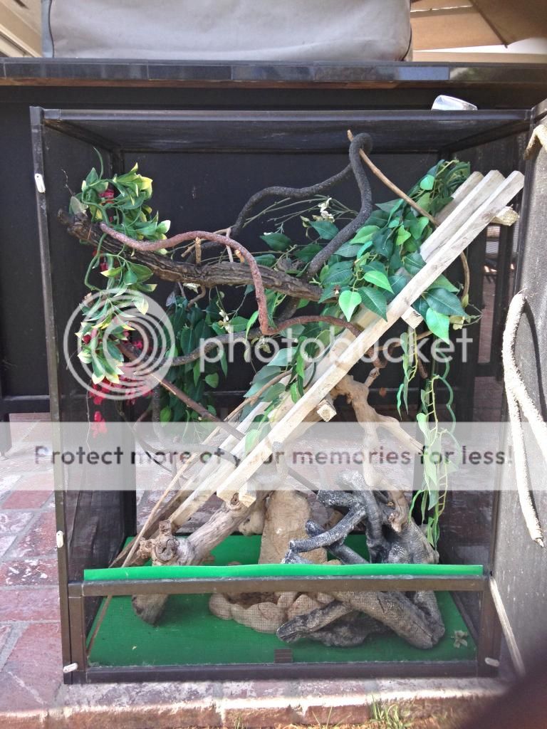 He stays outside in the sun during the day, and we bring him in at night because he's still not 100% and I'm guessing he's about 6 months old. Right now he's walking around my backyard, eating grass and flies