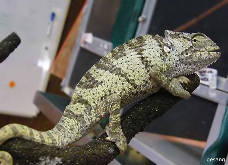 Due to similarities in care, Senegal, Graceful and Flapneck chameleons will all be described in this caresheet. These species are native to most of the equatorial countries of Africa and seem to prefer dry forest and savanna type habitats. All three chameleons species are almost exclusively available in the pet trade as wild caught specimens, which means they were born in their native wild habitat. Wild caught chameleons are very difficult pets to care for properly and require special care to acclimate to captivity. The chameleons that survive the wild collection and distribution process are severely stressed, dehydrated, and dealing with a heavy parasite load by the time they become available at a pet store or reptile show. Wild caught chameleons are not recommended for new keepers.