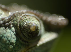 Sunken eyes is a reference to when a chameleon's eyes appear sunken into their sockets. It is generally a sign of dehydration although it can also be a symptom of other underlying health issues or pain. This is a warning sign that chameleon owners must not ignore. Increasing misting times and offering better access to drippers and showers should help improve hydration. Chronic dehydration can lead to serious health problems.