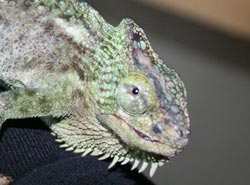 With chameleons an upper respiratory infection is caused by a bacterial infection on the lungs. URI’s are generally related to improper environmental conditions such as being kept too cold or too wet. Symptoms include difficulty breathing, gaping, excessive mucous in the mouth, discharge from the mouth or nose, popping or wheezing sounds, decreased appetite and reduced activity. An upper respiratory infection requires immediate treatment by a reptile veterinarian as antibiotics to treat the infection are needed. An immediate evaluation of temperatures, humidity and ventilation will assist in healing. If left untreated infection can turn into pneumonia which is more severe and harder to treat prolonging recovery.