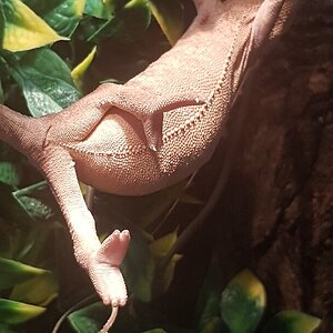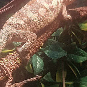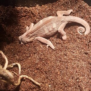 This is whindy. She is a panther chameleon and is about 8 months old. First time laying eggs and I think its been rough on her. If anyone has experience in females and egg laying. Please let me know anything you do. Thanks