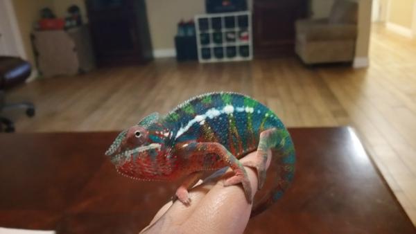 Chaos is a 5 month old male blue bar ambilobe panther from the jungle panthers in Tennessee sire is Higgins which is there yellow body blue bar panthe