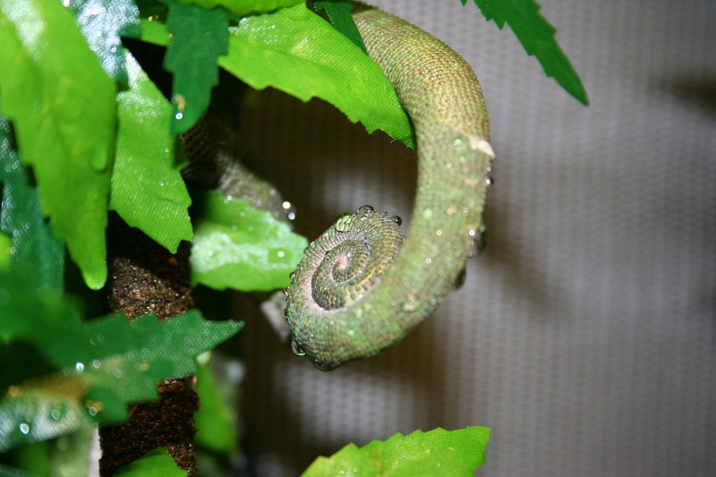 Ater misting she hides but I dont think she knew her tail was sticking out :P