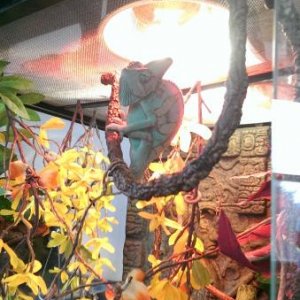 I have a young veiled who's maybe 6 months old and lately every time I come in the room he's being kept in he puffs up and gets all mad. Is this a normal behavior. It usually takes a couple minutes for him to calm down. Makes it very difficult to clean his cage when I can barley come close to...