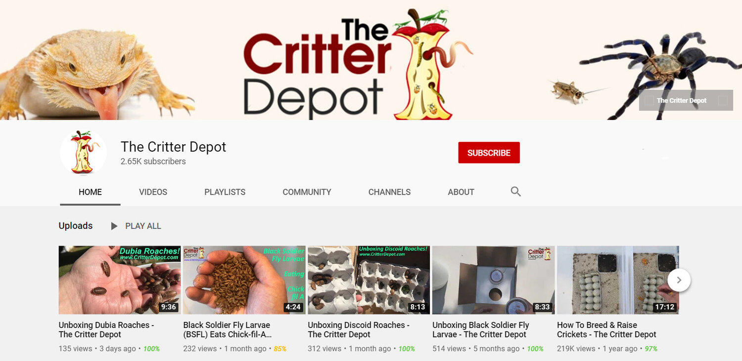 Admittedly, we're not as active as we should be on social media. But one area that gets our attention is posting informative feeder insect videos on our YouTube channel. Getting crickets and other feeder insects in the mail is unheard of for many people. So our detailed videos demonstrate what it's like to receive, unbox, and set up temporary habitats for your insects. Some of our most popular videos include: