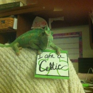I entered this pic of Ellie holding a sign reading ''I am a Celtic,'' into Celtic's Twitter contest for game tix...Ellie didn't win, but the Celtics added the picture to their 'Favorites' on their twitter account, which was just as awesome!