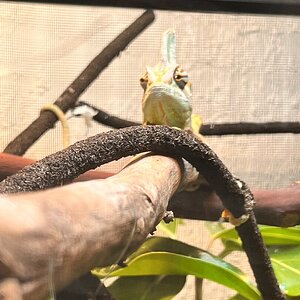 I have a six month old panther Chameleon and I am trying to figure out this "eye popping" thing he does. He rubs his eye on one of the vines in his cage and then "pops" or bulges his eye. He doesn't do it alot but it freaks me out when he does it. It seems like each time he does it that he...