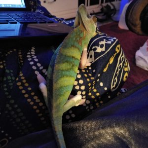 You can see it but Nachito is stalking a waxworm! She gobbled it down fast