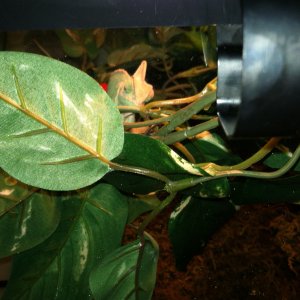 First time out of his tank (for an extended time), just chillin' on his new umbrella tree