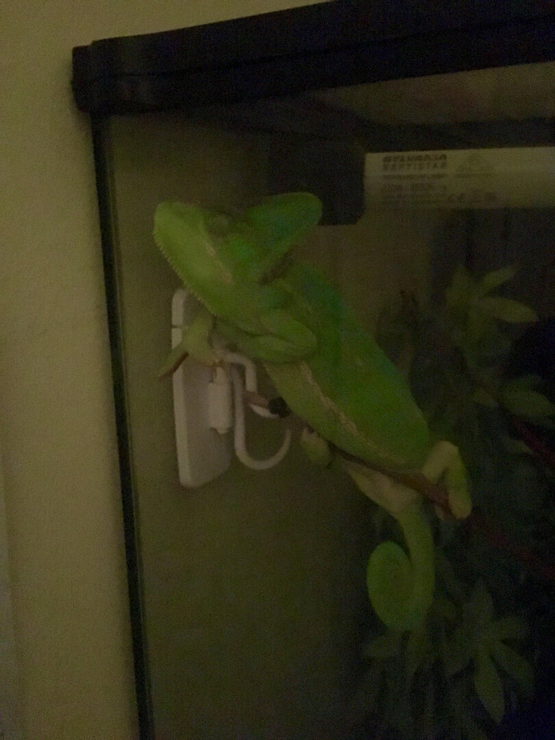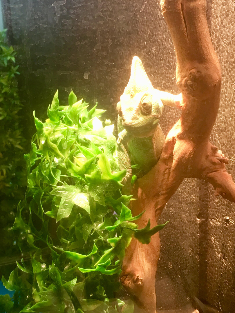 I'm Chris and from England, I recently brought into my home a 1 year old Chameleon. I have named her Aloy after the character in Horizon Zero Dawn. I recently lost my bearded dragon Fluffy as I came upstairs to find him passed away , it looked like he ate too many greens at once and got them stuck in his throat. After a grieving period and Losing one of my Rats Sam (Sammy) to cancer and my dog Babuk to liver failure (its been an emotionally brutal year) I needed a new animal friend. After caving into my girlfriend ( I wanted to do a lot of pre research and learning) we cam home with Aloy last Friday.