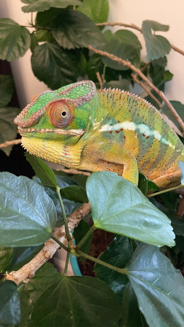 Need to rehome my 1+ year old male ambilobe panther chameleon, bred by Chromatic Chameleons.
