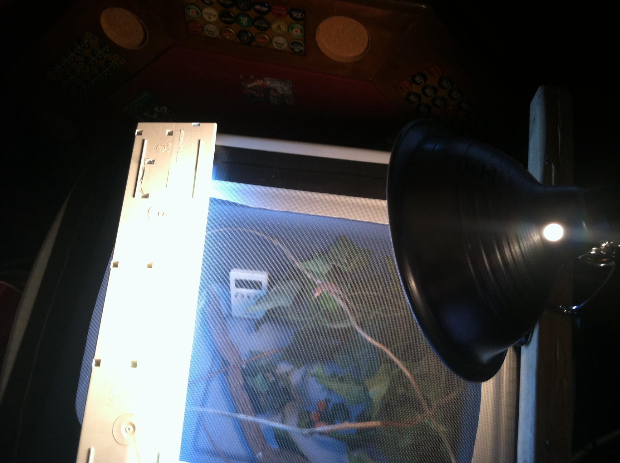 If it's just a matter of finding his food- just go to walmart and buy him a storage tub for $7 and set him up in that for a month or so while he grows. Back in the day I raised quite a few in storage tubs and notice a lot raise babies like that still here on the forums... Just leave the lid off and make sure he can't climb out (keep your sticks lower down in the tub).