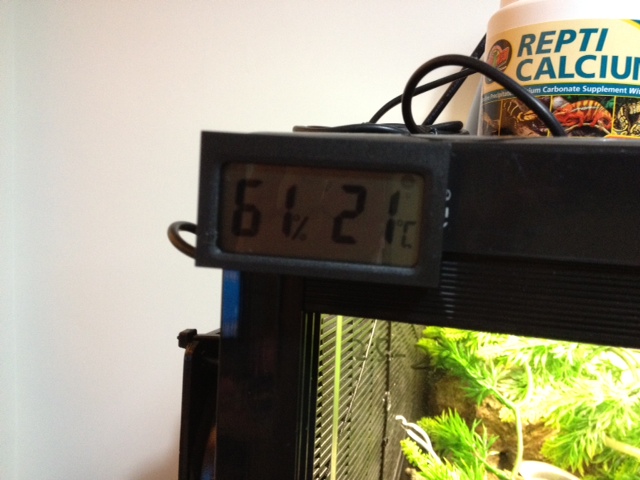 Temperature - It is about 24C degree on uvb side while around 38 degree at basking spot in day /night. I have a digital thermometer in both side.