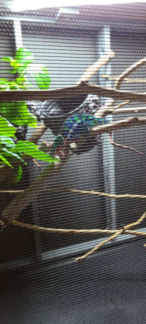 He has been going all over it since moving him in there, but maybe spends most of his time on the high long branch closest to the door.So question... Is he typically basking in the back where the UVB is? The UVB output is only directly below the bulb where the reflector ends... Does not spread out much at all. So if he is not basking in the back I would consider moving the UVB to where he sits.