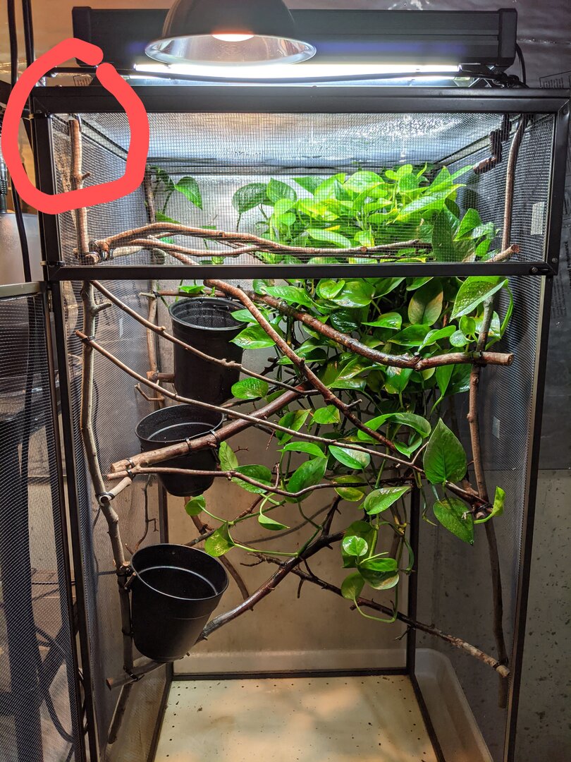 That's very creative. Looks nice and clean, too!!I use a diy method for "floating garden" style cages made popular by dragon strand/chameleon academy. I put a sturdy branch in each top corner and drill a hole through each branch. I use the black zip ties and go around the top cage frame through the screen and through the hole in the branch. Then you can connect the four vertical branches with horizontal ones. The end result is like having dragon ledges. View attachment 308975