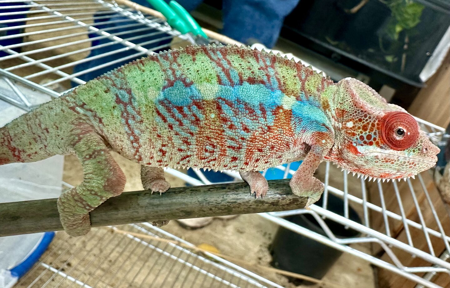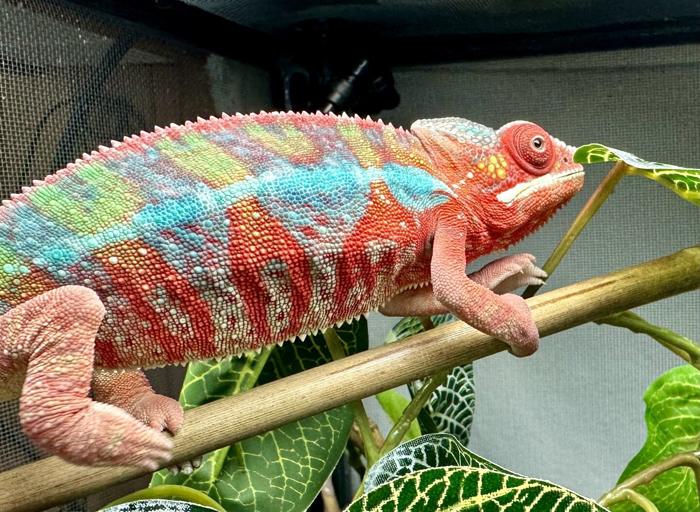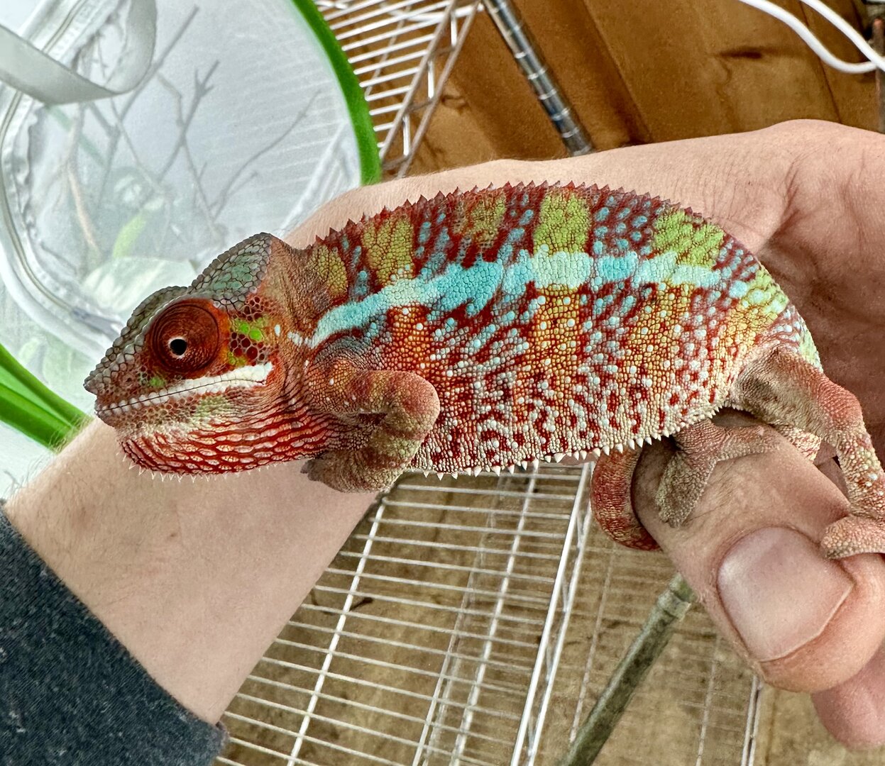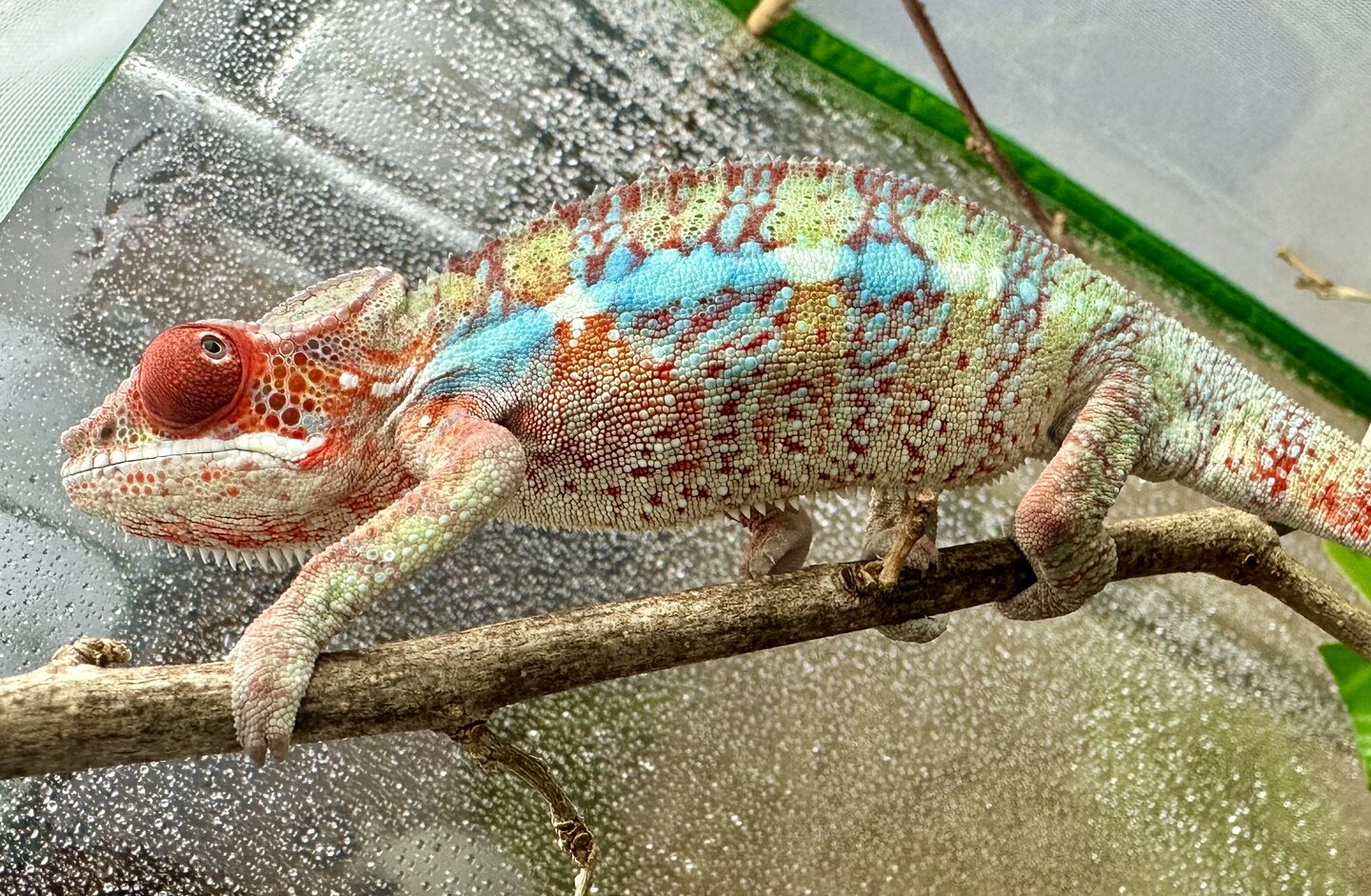 This little guy is 4mo and starting to color up more by the day. Loves mantis and silkworms the best, but will literally eat anything he can shove down his throat. Every male in this clutch ended up with strikingly vibrant red eyes so far. Very curious and friendly disposition on him.