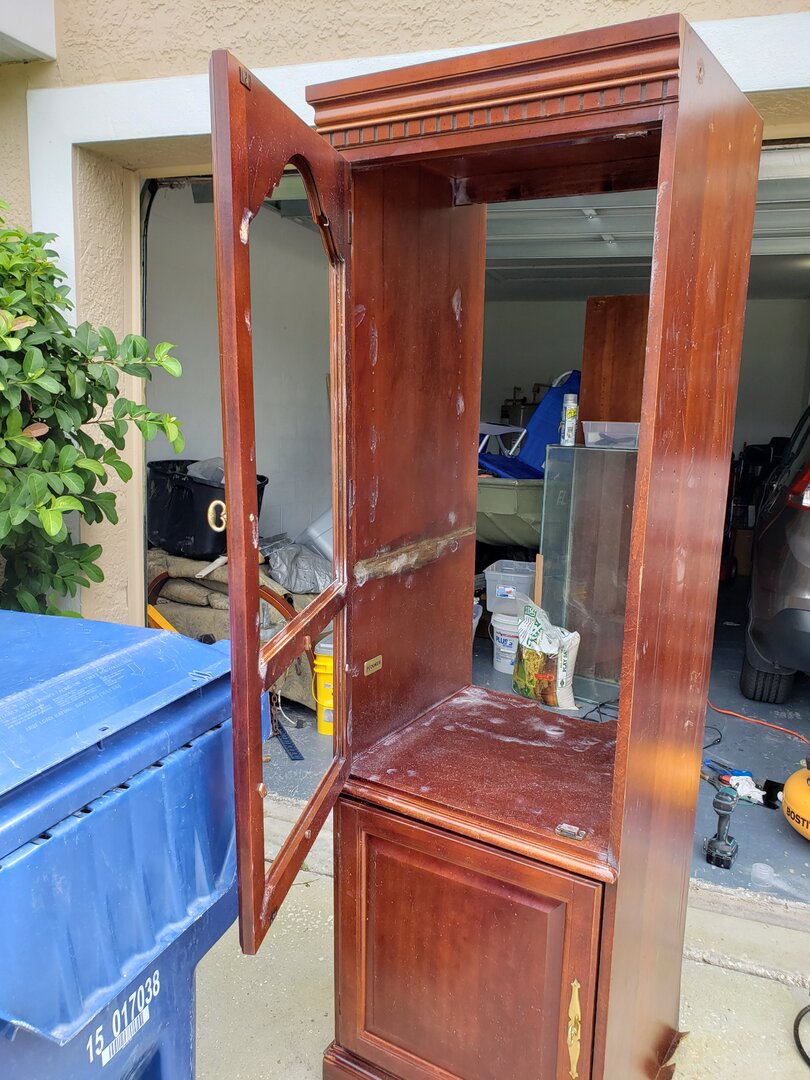 One or two of the shelves was a little bit of work as it was set into the cabinet. I busted it out and used some putty to fill the bigger gaps. [Just cause] Then I hit it with a slight bit of a random color stain I had to blend it better than bright white. And removed the window - simple gasket removal and the whole window came off.
