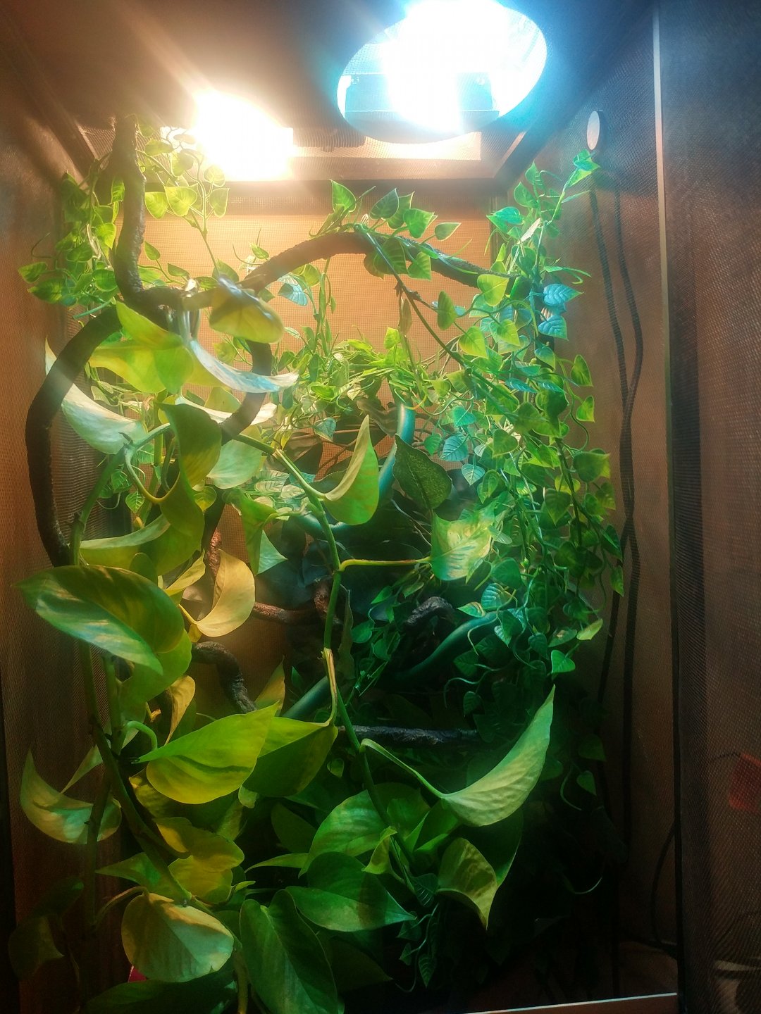 I'm new to the forum but I thought I would say hi. I'm picking up my first chameleon next Saturday. He's a panther from Captive Creations and I've been waiting for him since he's hatched. Everything is set up and ready to go. I'm open to advice too. I still need to fill out his adult set up more way more but I'm happy with how his little condo is looking. His adult set up is 2x2x6 and will and bith vivs will have a mist king too. Anyways let me know what you think!