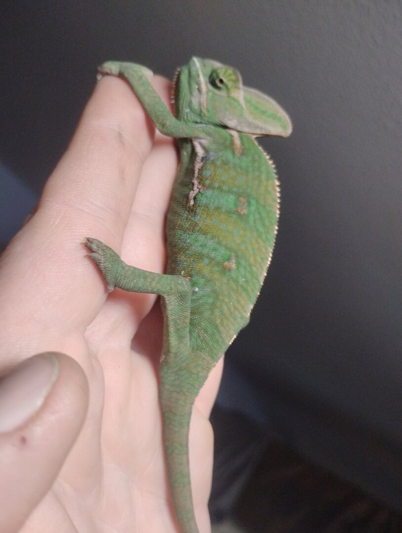 So you can 100 percent tell if you can identify a bulge after hemipenes but I can’t discern this for my life. The casque is a lot taller in a male and in a veiled the tell tale sign is the tarsal spurs which your boy has.
