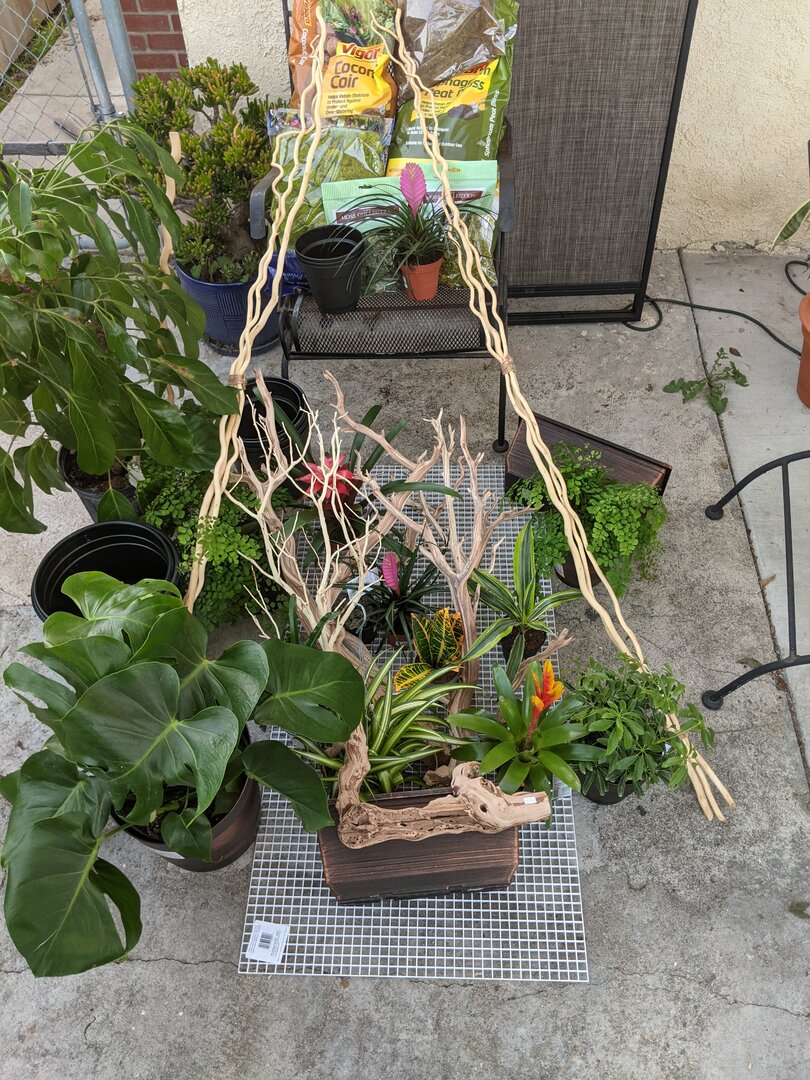 As the subject indicates I'm beginning a new build for summer home for my young adult male panther. He's been doing great and is overdue for a luxury condo instead of his timeshare I've got all the materials to build a living wall including the light diffuser new cage dragon ledges foliage Moss plants sticks branches and so on. I was just hoping to pick anyone's brain for useful dues or don'ts when applying the great stuff and silicone I did read that the liquid flex seal was preferable for spreading however I had three tubes of GE silicone 1 which has been expressed to be safe for chameleons. I'm really excited to add this enrichment to his life and enclosure I also know I will need supplemental lighting in the form of LEDs I know several people have advocated for the sansi brand and I hope to find a promo code otherwise I'll likely buy a jungle Dawn so that I can spotlight the supplemental lighting needs.
