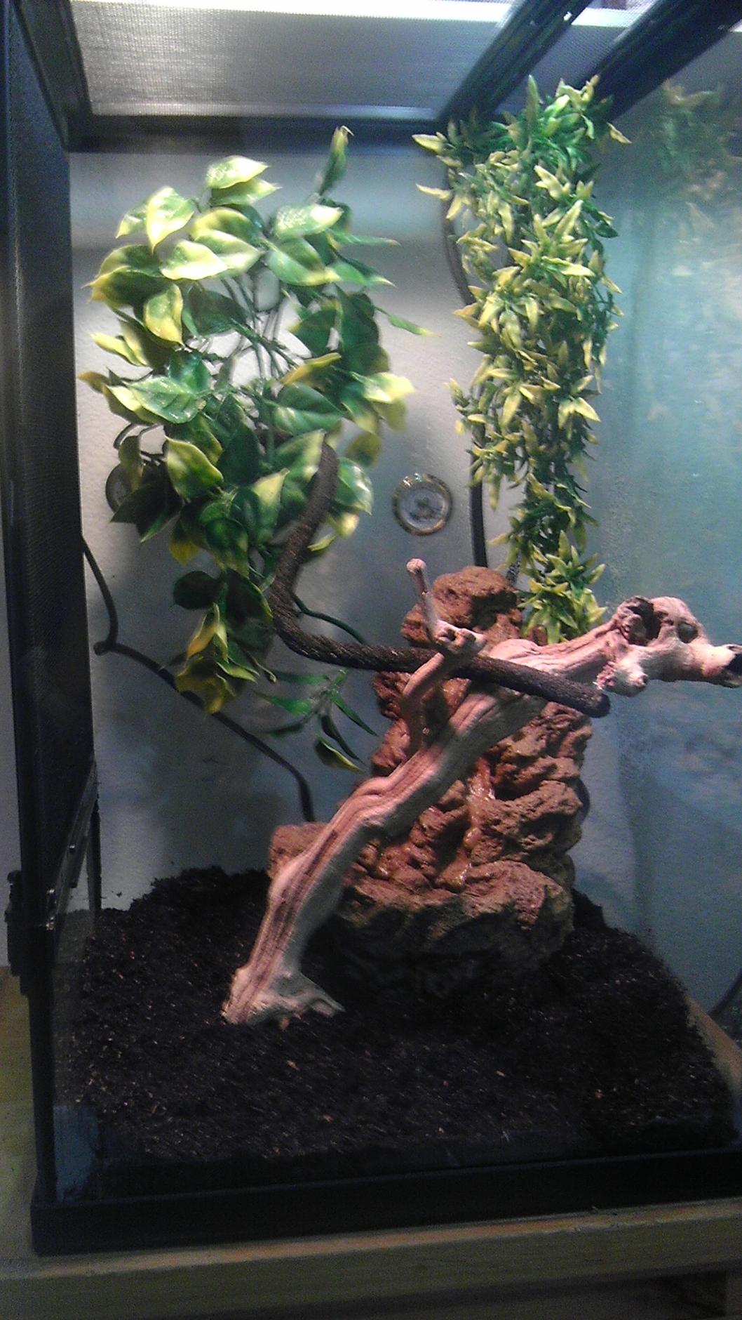 He will open his mouth at the top of the cage as well.. figured that it was too hot for him so i moved the plant that he was on down.