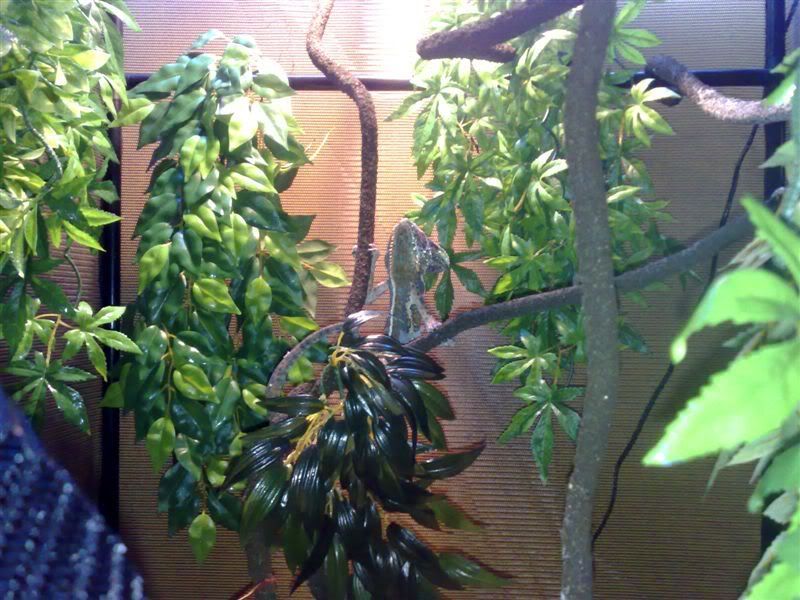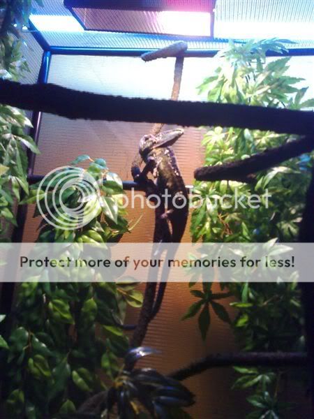 Been here a while and haven't posted any pictures of my chameleon! He's a Adult Male Veiled called Ziggy! He's about 18-20", in a 4ft x 30" x 30" Vivarium. He's starting to get used to me slowly, he does get aggressive every now and again but nowhere near as bad as when I first got him :)