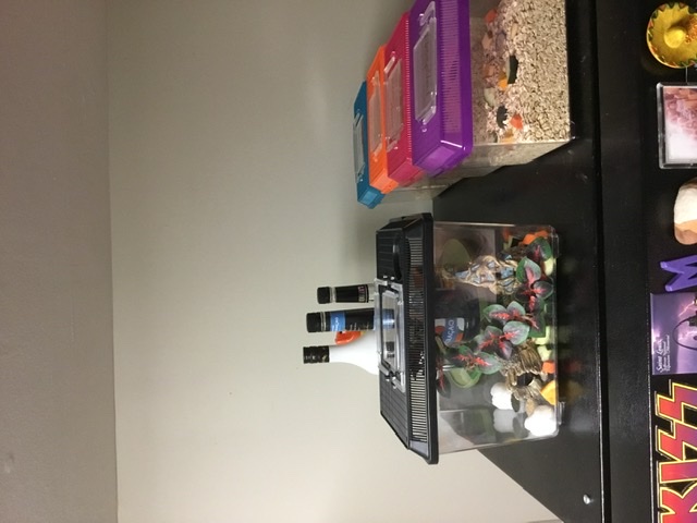 • Plants - We have one live pathos and one live corn plant, the rest are fake. I consider transitioning to all live plants. Veileds are known to eat plants and if she gets a hold the fake ones, she could become impacted.