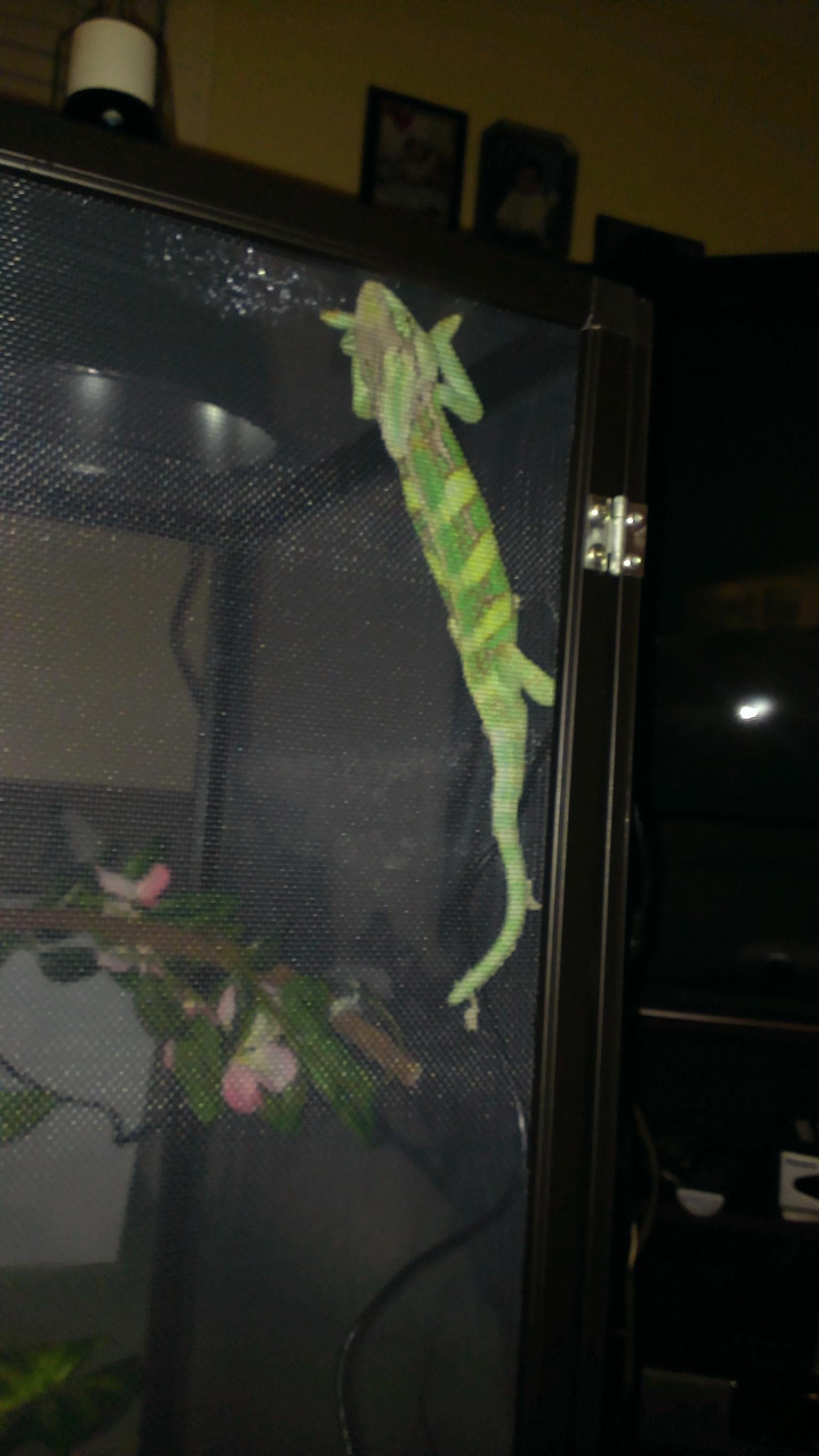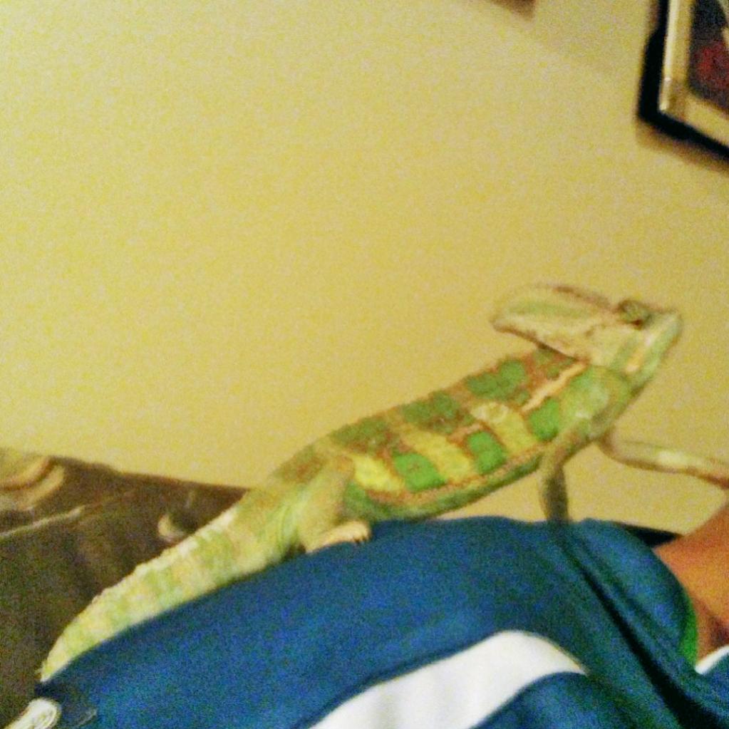 HI, so I got my chameleon today and I'm trying to figure out how old he is. He is 9 1/2 inches so far (tail to head) and I got him from a pet store but they didn't know his age. He seems really healthy so far and he is really calm and even climbs all over me