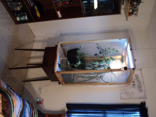 P.s. your enclosure could do with some more plants to hide in and more vines etc to climb on ;)