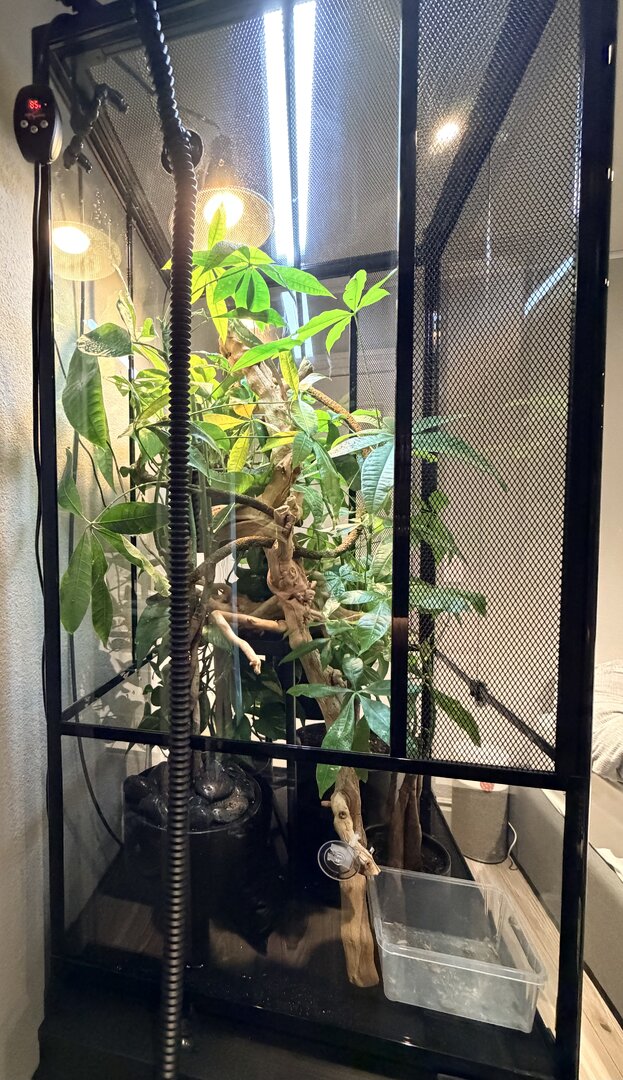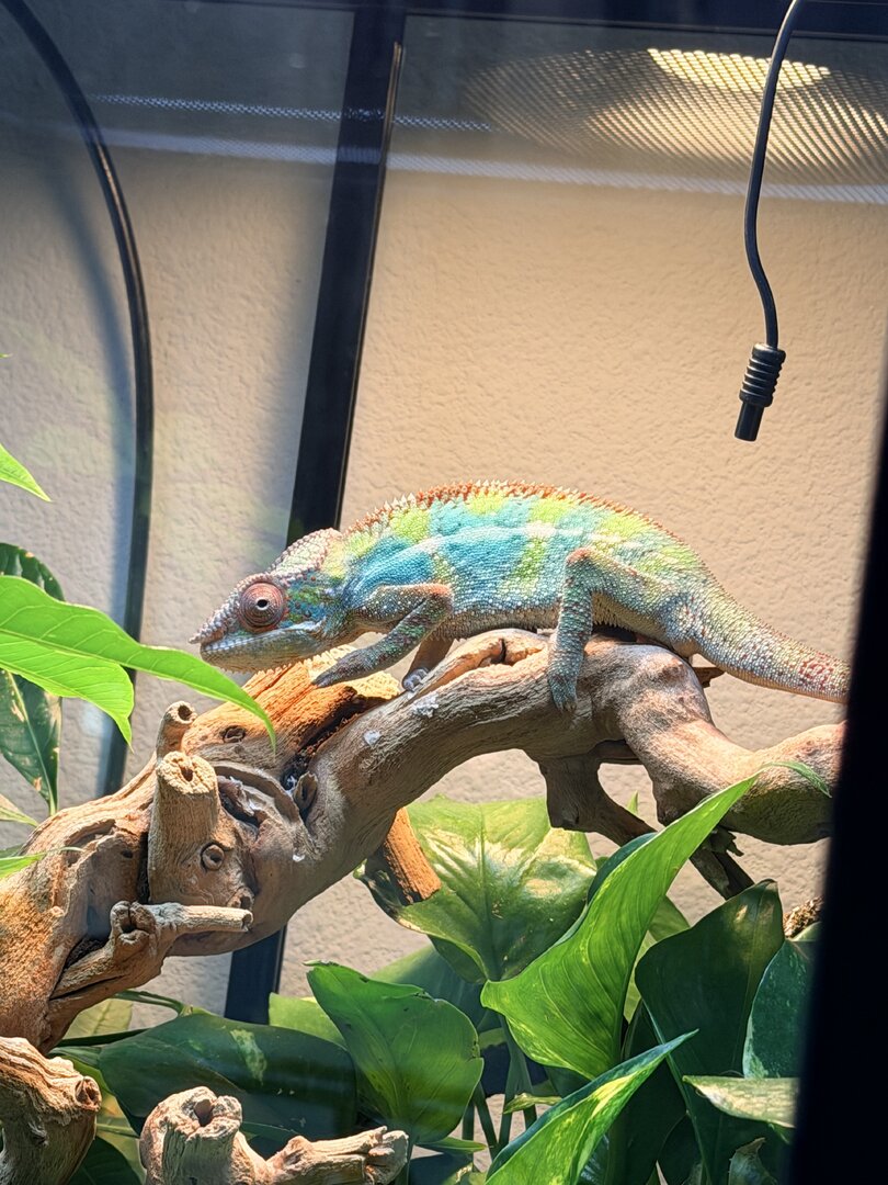 My male panther chameleon who is i think is about 8 months old (I’ve had him for about 4 months) always seems stressed or scared in his actions. His colors are always normal he never really gets dark but he always seems scared. He will be acting normal but then he starts running randomly and starts panicking and I have no idea why. Whenever he starts running he ends up glass surfing and sometimes climbs the screen. He paces around a lot too. He has lots of places he can climb but sometimes he just goes back and forth on this one vine. He has the right size enclosure (2x2x4 hybrid enclosure). I’ve never seen him close his eyes during the day only very rarely about an hour or 30 minutes before his lights turn off. However, his poop also seems very wet and weird sometimes so idk if this could be signs of parasites (he always has an appetite though) or if this is normal if someone could help pls.