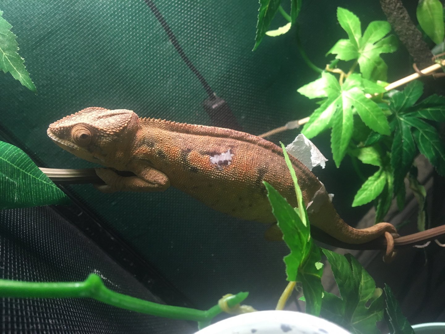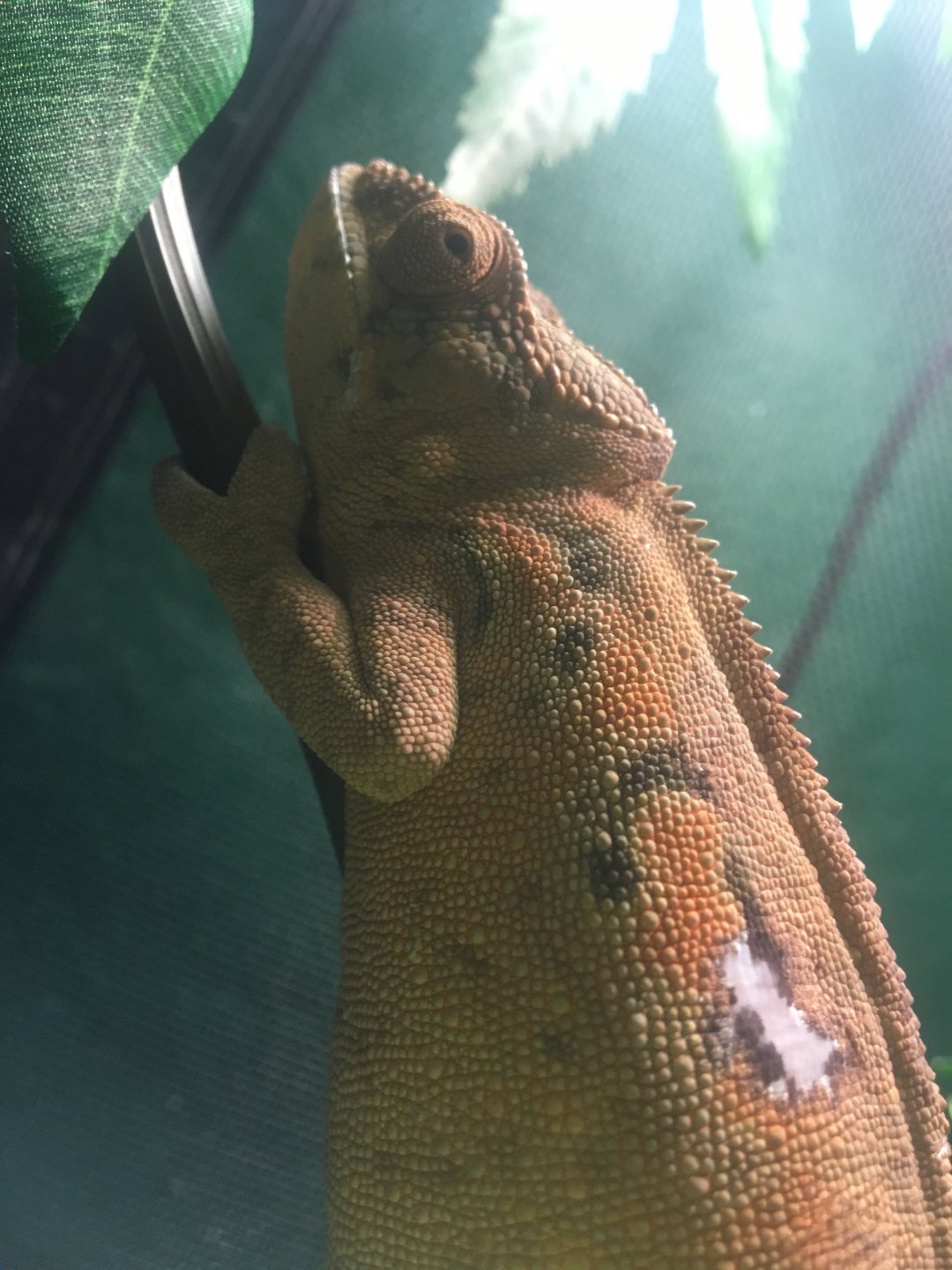 So I adopted my chameleon from petco because I saw the horrible condition she was in the lady told me someone put 3 high voltage bulbs on her cage and she got badly burned so I had to take her. At the time I was told she was an albino male panther 5 months go by I posted pics on here found out it’s a regular female panther.