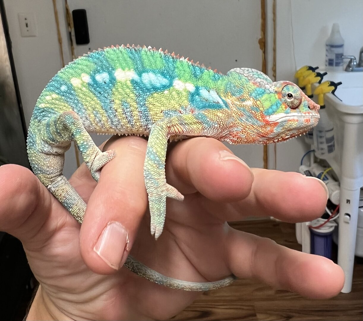 All of our Chameleons are hand raised by a veterinarian so you can be assured you are getting a healthy, parasite free, vet checked chameleon.
