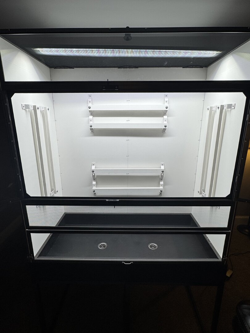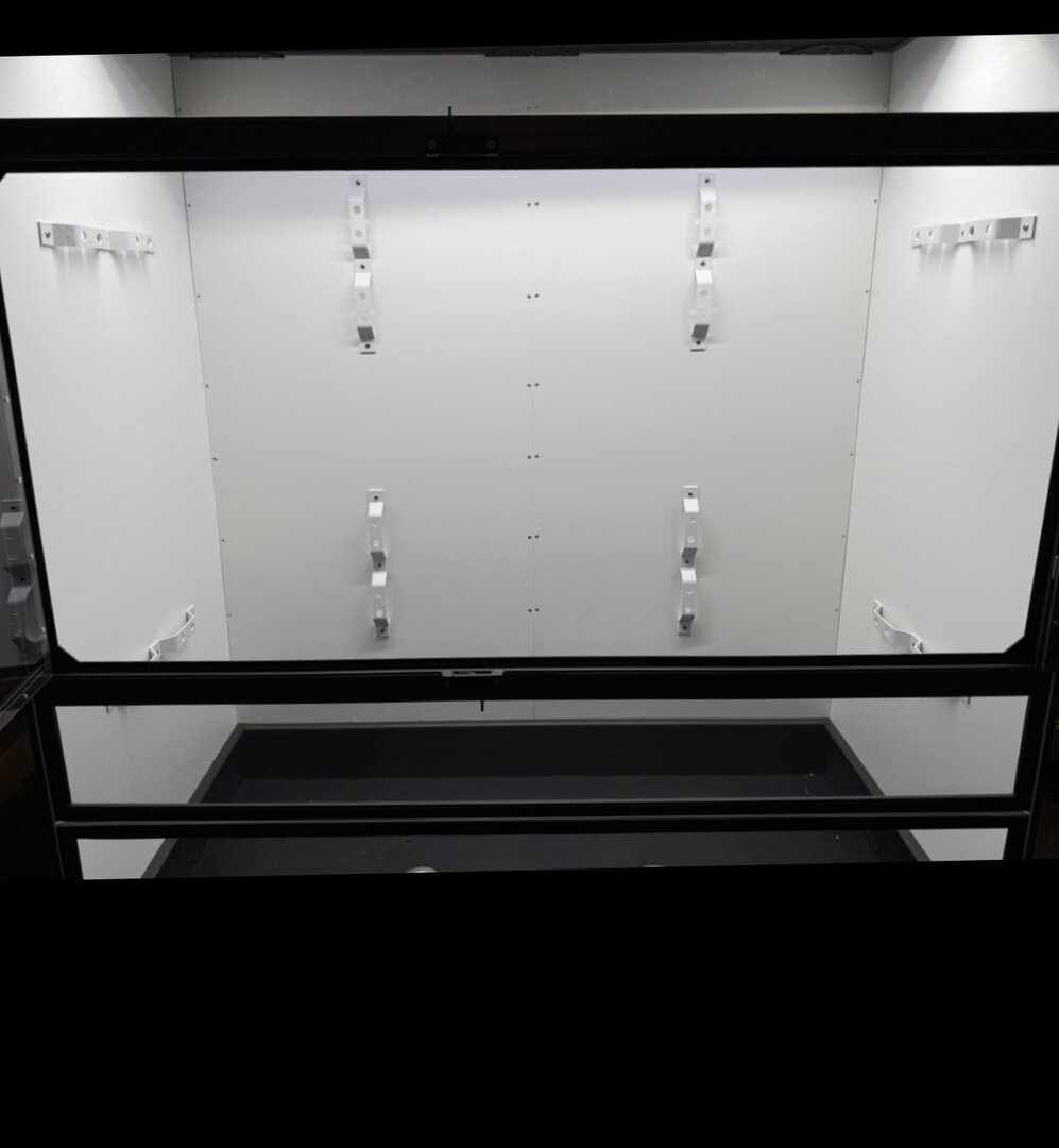 My Albert the ambilobe has outgrown his Reptibreeze XL. I got him a Dragon Strand Large Atrium and the Cross Cuts stand. Well, I got two actually because I’ll be welcoming a baby male Parsons next week. Thanks Rick! I’m told he’s only 5” long so it will be a while until he’s as big as Albert.