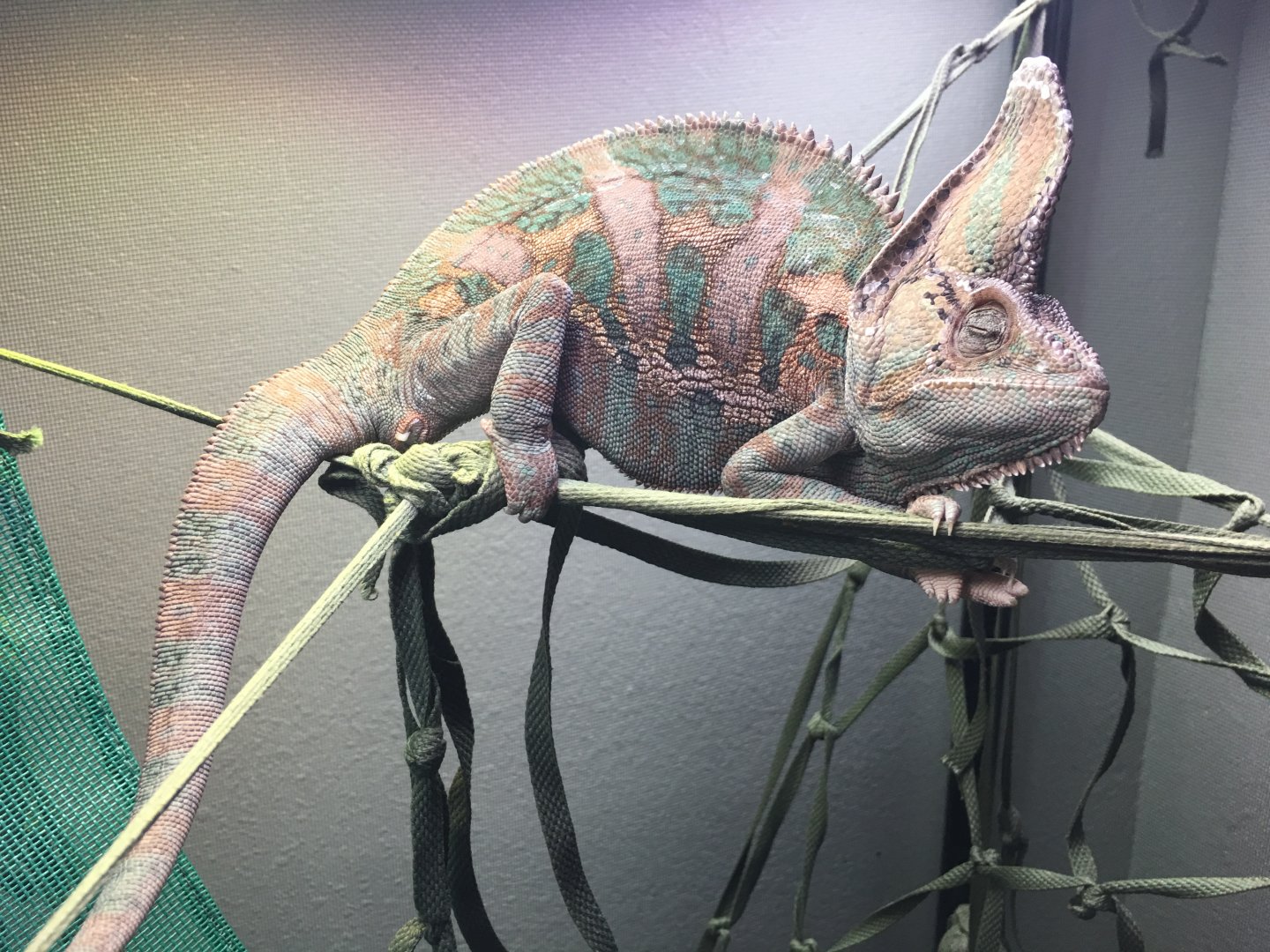 Pics attached are before and after he noticed me taking his picture plus one of him under the Solar Glo