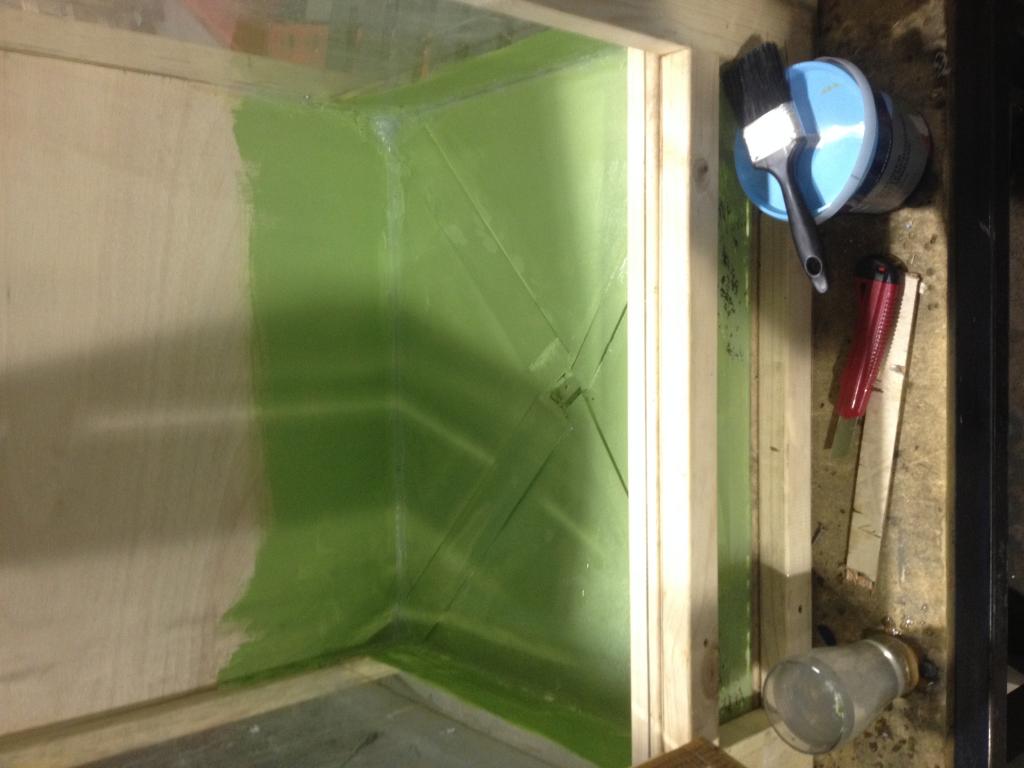 ive made it fall to the middle and that green stuff is bathroom waterproofing the little man is very excited for it to finish as you can see