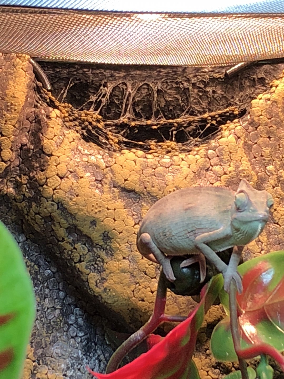 Hi everyone! First I would like to say I am so so so happy that I found this forum. Let me give you a little back story. I have never owned any reptile in my life. I am however a pretty caring person. So when I went to this pet shop not to far from me I saw the chameleons and I was just like, “Wow these things are so cool, I would love to have one!” And of course, trying to make a sale, they made it sound so easy to take care of these little guys. Not at all! Which I’m not complaining about by any means! I got him on the 6th which was this past Saturday. Since then I’ve been so swamped doing all sorts of research on these guys and trying to figure out everything I can to keep this little man alive. His name is Mojo by the way.