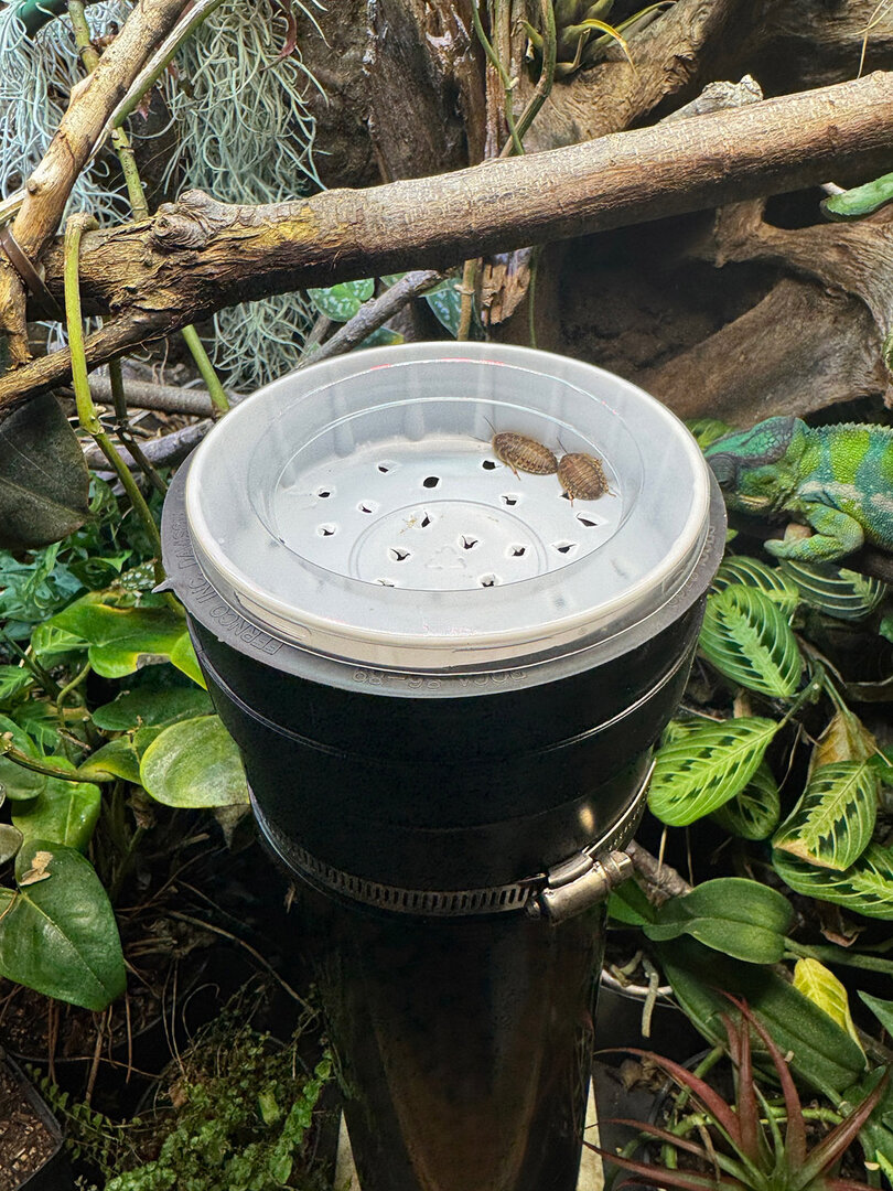 I'm planning to be gone for 2 full weeks and did a deep dive on feeding automation. The misting, venting, and lights are fully automated and very reliable, but feeding can't be automated like that. I know that having someone feed my cham is ideal, but after an exhaustive search, absolutely nobody wanted to get near my dubia roaches. I will have someone come in every couple days to make sure everything it working. Again, I have no one available at all that would directly handle bugs.
