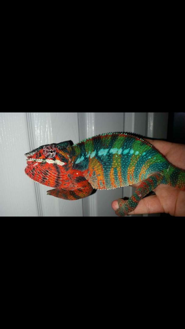 Thought I’d share my new male baby blue bar ambilobe chameleon from @Matt Vanilla Gorilla at NutsOverChameleons.com. I’d like to start off with thanking this site for helping me these last 6 months in gathering so much helpful information to get started in chameleon keeping. While I’m no where near an expert I can at least say I’m 100% confident in keeping these amazing creatures now and have a basic understanding of everything they need. This forum also helped me find a panther chameleon breeder @Matt Vanilla Gorilla he’s amazing! We have swapped texts in the last few months with questions and chameleon pictures and I can vouch he is extremely reliable and is just an all around great service and person for what he does! If your looking for a panther chameleon you can’t go wrong with him!