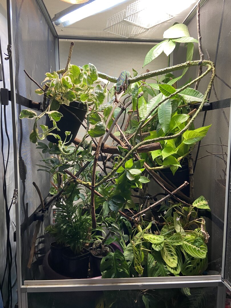 I’m so happy to hear back from you. You have it correct that chameleons need total darkness to sleep. Colored lights at any time of day or night can hurt sensitive little eyes. Unfortunately most pet store employees have been given poor info about what chameleons need and some don’t even sell the correct items (Petco!). Usually we have to order most things on line and from different sources. This is another way that Neptune’s kit is awesome. Not only is it a big $avings, but it’s quicker and easier. The comparison of enclosure sizes is when I was learning and just a couple of months in and it was a real journey of learning and improving until I finally had all of the basics down. While I was too shy to take full advantage of the forum for a bit, just knowing that support and help was a keystrokes away was so reassuring. So, whatever we can help with - yes, we do enjoy celebrating achievements with each other too - don’t be shy.