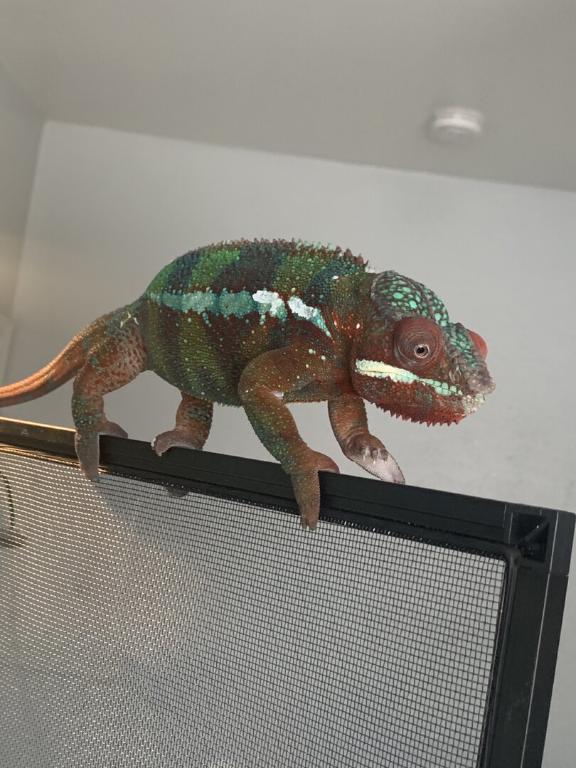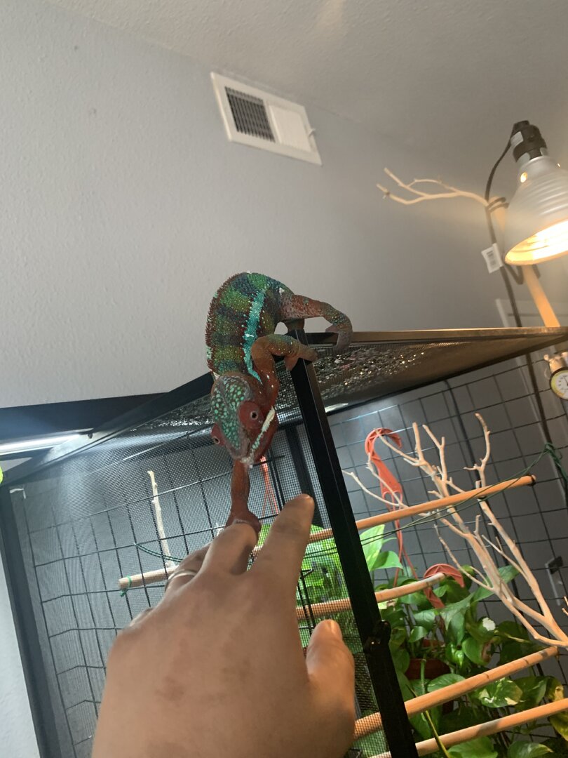 He is always lapping up water from the top of his enclosure and has a steady appetite for super worms, hornworms, and dubia roaches.