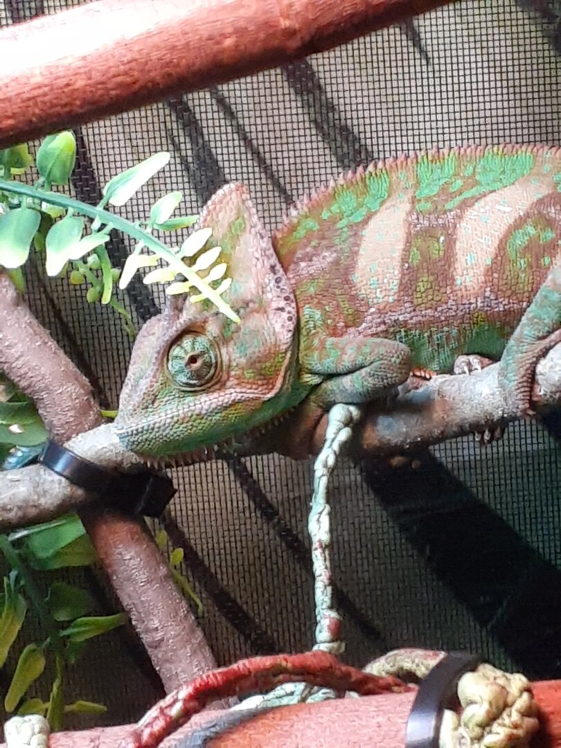 I know about the plants, that's the last plastic one in the enclosure, was just waiting for my pothos to fill out, thank you for the reminder thoughThose are normal male veiled coloring. He may at times show darker lines along the casque as well.