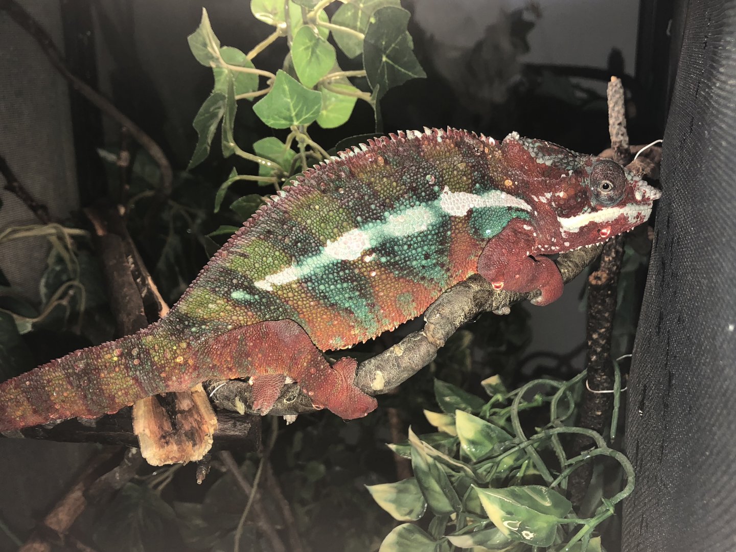 The last couple months, my 2 year old male panther Ambilobe has been ashy. It looks almost like dry skin. He hasn't shed in a while and the breeder I bought him from suggested I give him regular steamy showers to help speed along the shed process. He used to be really bright and colorful but recently he looks muddled. Any ideas what it might be? I am convinced he just needs to shed, but nothing I have done seems to work.