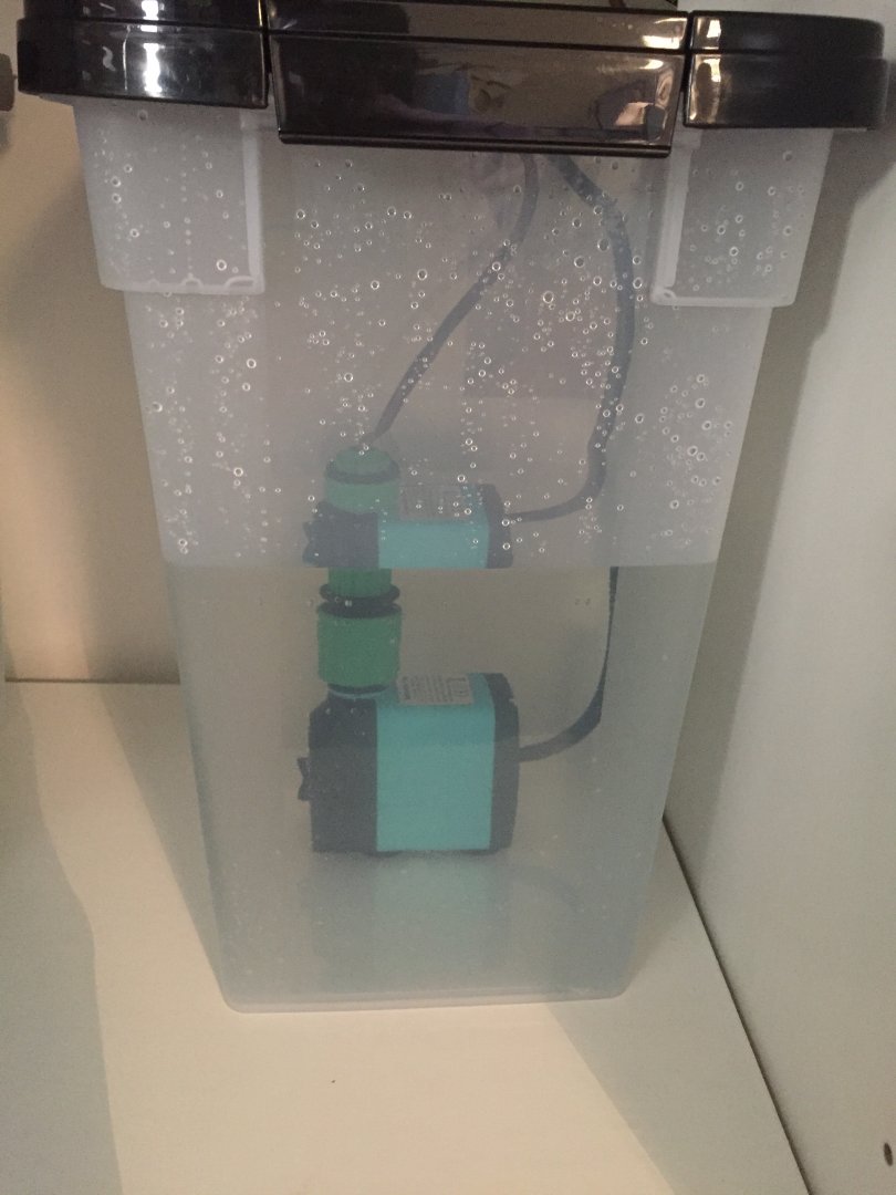 A water reservoir that is deep enough for the pump: https://www.amazon.com/gp/product/B007RBB662/ref=ppx_yo_dt_b_asin_title_o01_s03?ie=UTF8&psc=1