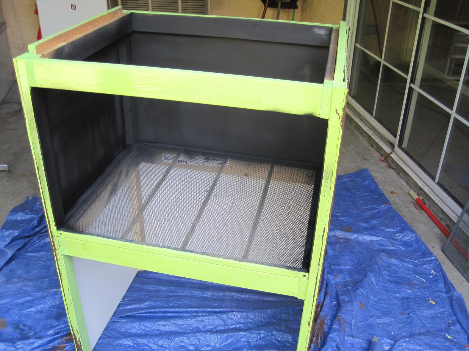 Got lotta leftover woods, took it to the woodshop nearby which s like 3 mins walk from my home. He made it and look good! Pay him 40 buck. I painted it with brown and lime green. Did lotta overcoat with latex/gloss. Bought 4 spray can which prevent waterproof or cracks from the wood/metal/pipe or else. Its black and sprayed inside the box.