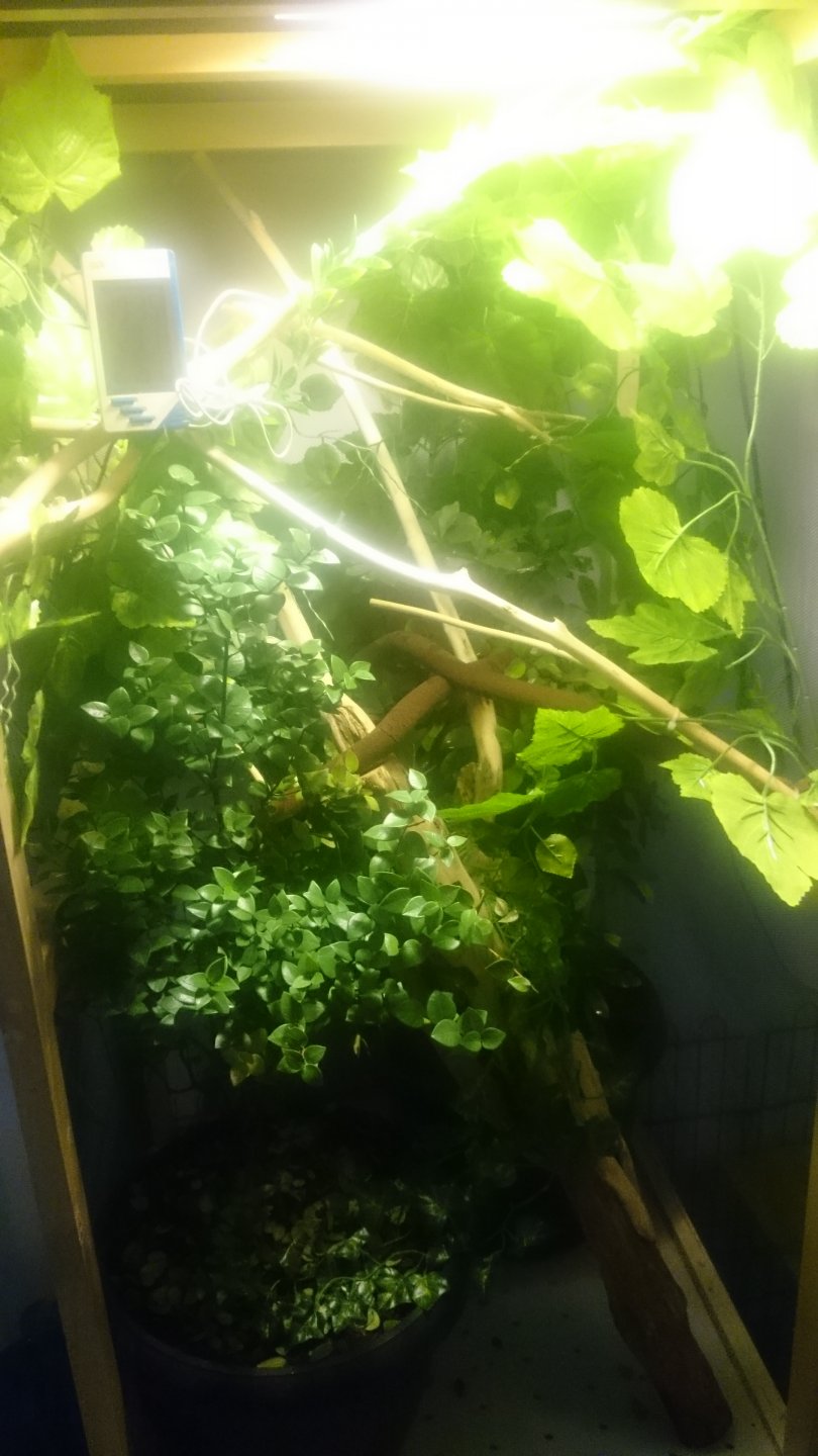 #my room humidty around 45%# - Plants - yes , i put 2 live plants with its pot each to maintain humidity level, i dont know the english name for that plant, but im sure its non toxic for chameleon.