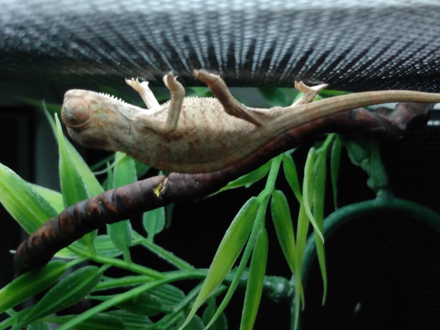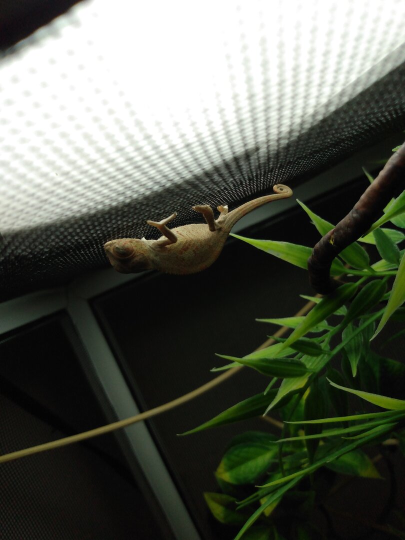 Hello I have a question about my baby panther chameleon I've raised chameleons before I've raised them from eggs before but this is my first panther chameleon he is a few months old he's been really good until the last three days he's had his eyes closed he's still very active and crawling around and his eye sockets are still moving but the holes are not open I have called the vets around where I live and I can't get him in until possibly April 5th the soonest if I can get him in as an emergency but that's a big if so I was wondering if there's anything I can do to help him right now or to help his eyes right now or to help him eat right now because so far all he can do is drink water because his eyes are closed
