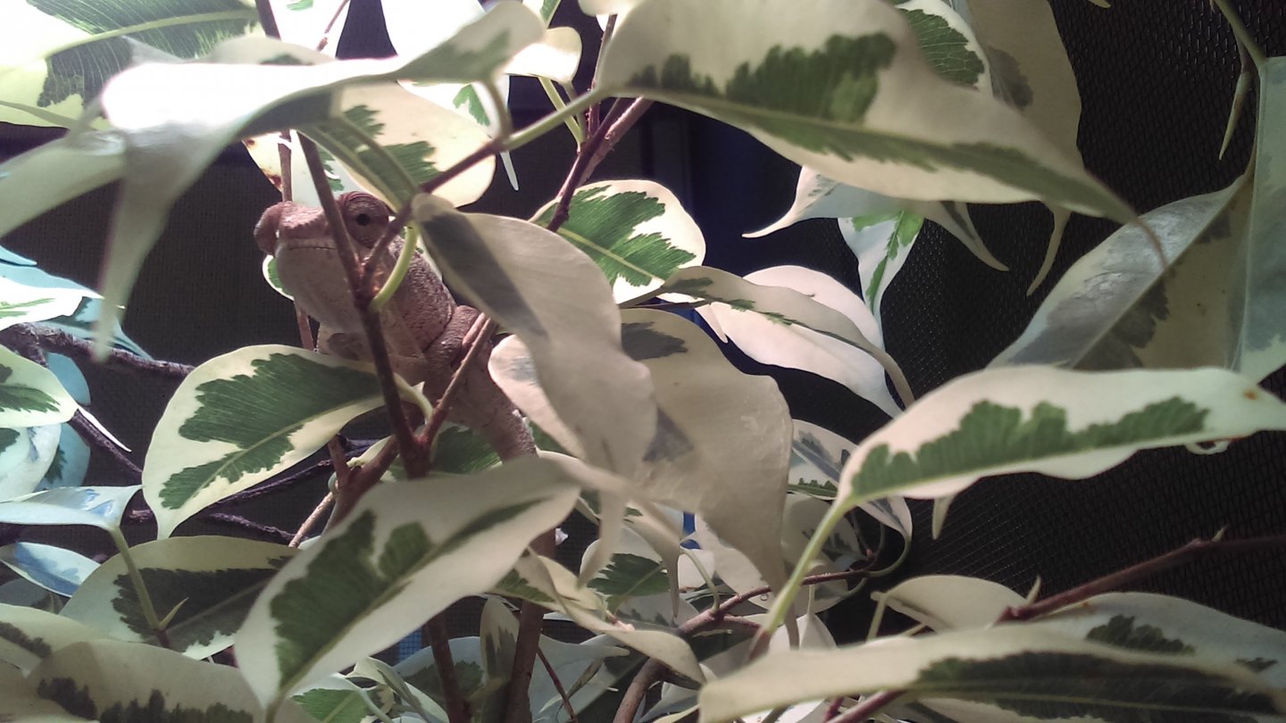 I may just be paranoid, but I feel like he's not thriving the way he should. Mind you, I'm not the primary caregiver. I purchased this little guy for my girlfriend for our 11th anniversary. She and her son had a veiled before we met and she has always talked about getting another chameleon. They did not necessarily take as good care of it as they should have, but I figured some education and proper supplies would make all the difference. I'm all about doing things right or not at all, so we spent a month researching and preparing, but I was never 100% comfortable with the idea just because of how delicate they are. My girlfriend has adult ADHD, so she has an issue with patience and gets easily frustrated which also concerned me. She swears he hates her, but I think we're just not providing for his needs in some way. I've also told her many times that these are not the kind of pet that like to be handled, but apparently her veiled was unusually friendly which gives her the opposite impression no matter how many times she hears/reads otherwise.