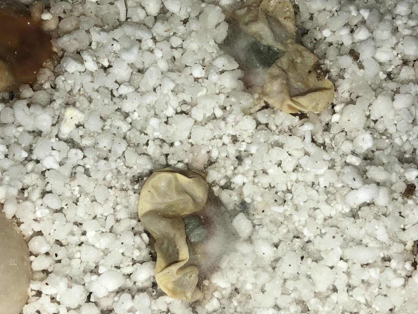 So my veilds are finally starting to hatch! But I have two problems. I don’t know when this started due to me working 12 hrs a day for the last 18 days and of the three that hatched none of them made it out of the shell. I don’t know when they started to hatch but it was long enough ago that the dead babies had a bit of white mold on them.