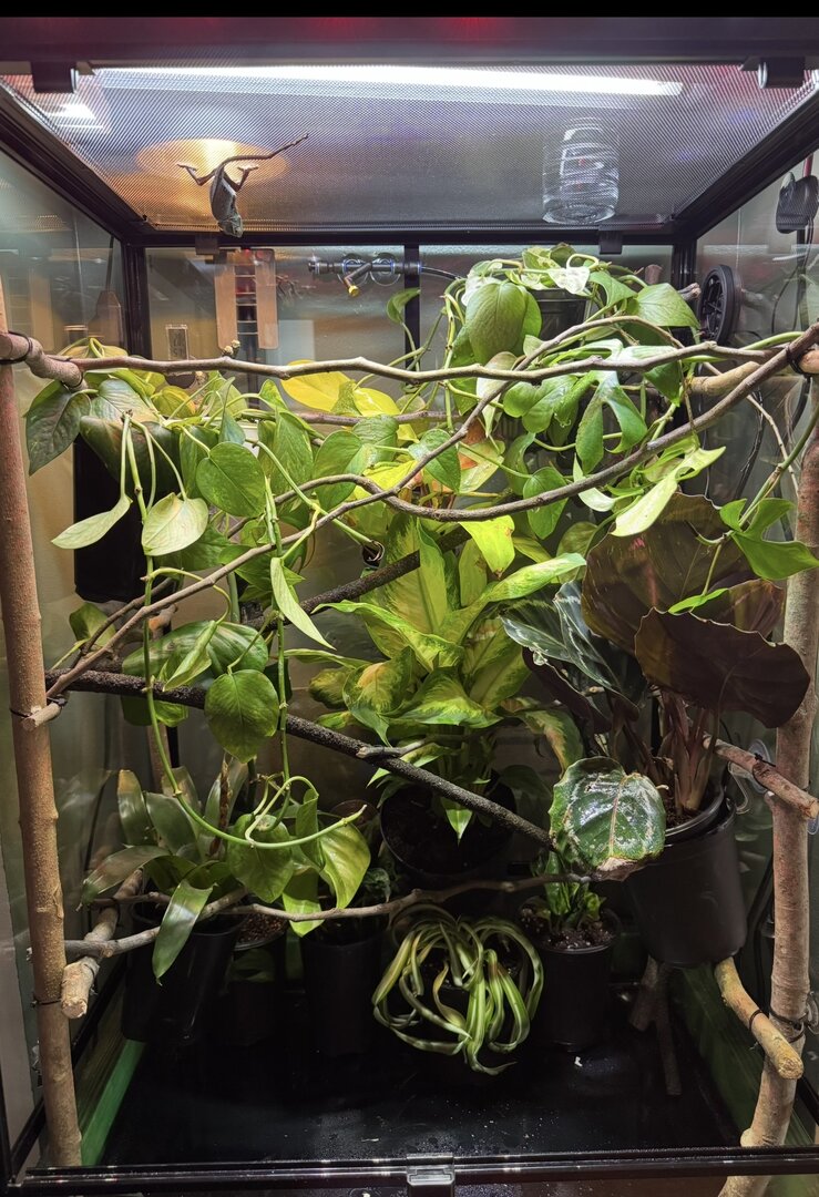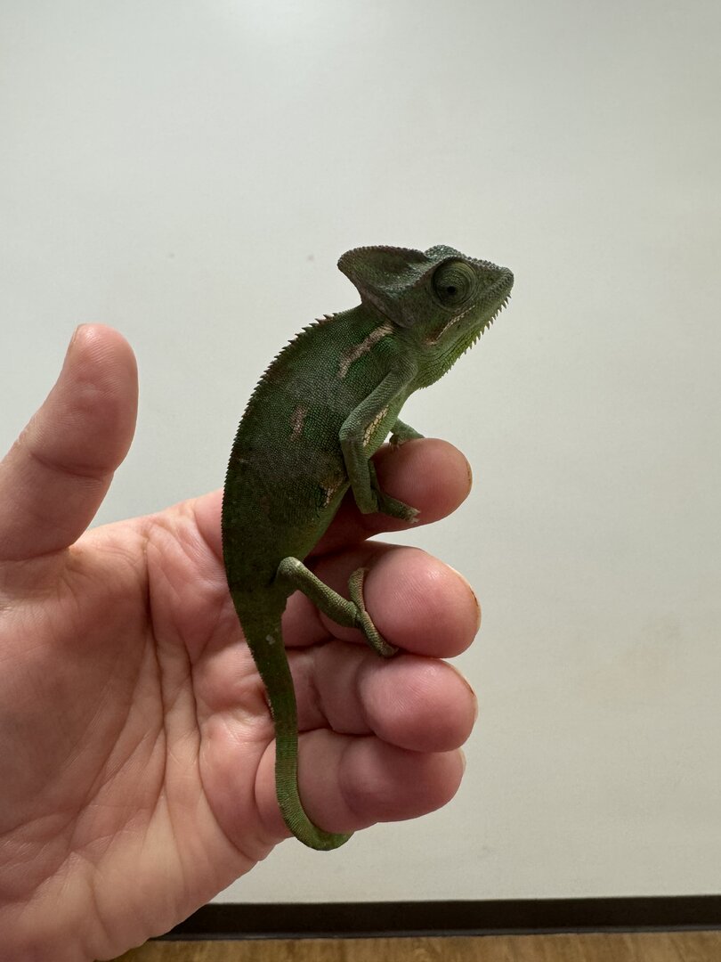 Hello, brand new chameleon owner here. I have a question regarding lighting & basking. I currently am using the Reptisun 5.0HO combo lamp and a 100W basking bulb for my 1 month (I think?) old chameleon. I am struggling to understand the requirements of these and how it all works together for my little guy Dexter. I keep reading about "basking" being under the UV bulb, but that is not the "basking bulb" I have purchased and set up. I know the basking bulb is to deliver heat, right? Is it not for basking as well? Does he need to bask under the UV bulb? In my set up, I have the basking bulb in the back, and the light is outside the cage, suspended up off the cage. It has a dimmer switch, so it is not all the way turned up. I have the a thermometer/hygrometer set up next to it and his basking temp. is set at 84 F. The Reptisun long lamp combo is in front of that basking bulb, so towards the front of the cage. It is resting on top of the cage. My concern is that he likes to climb up on the top of the enclosure ceiling and lay directly under the UV bulb. I don't want him to burn as that light is just above him on the screen (it doesn't give off heat, but UV burns). Is he trying to bask under the UVB instead of the basking bulb? I know he needs UV AND heat...so he needs all those lights. Should I try to suspend the UVB light bulb so he doesn't burn his toes & belly hanging upside down directly under it? Also worth noting: he stays pretty dark (especially when basking). When I tried to encourage him down from the ceiling, he didn't seem to budge, so I turned off the whole Reptisun unit for a few minutes and walked away. When I came back, he was off the ceiling and was a much more light green color--does that mean something? Thanks for any help as I am a newbie (5 days) with my guy!